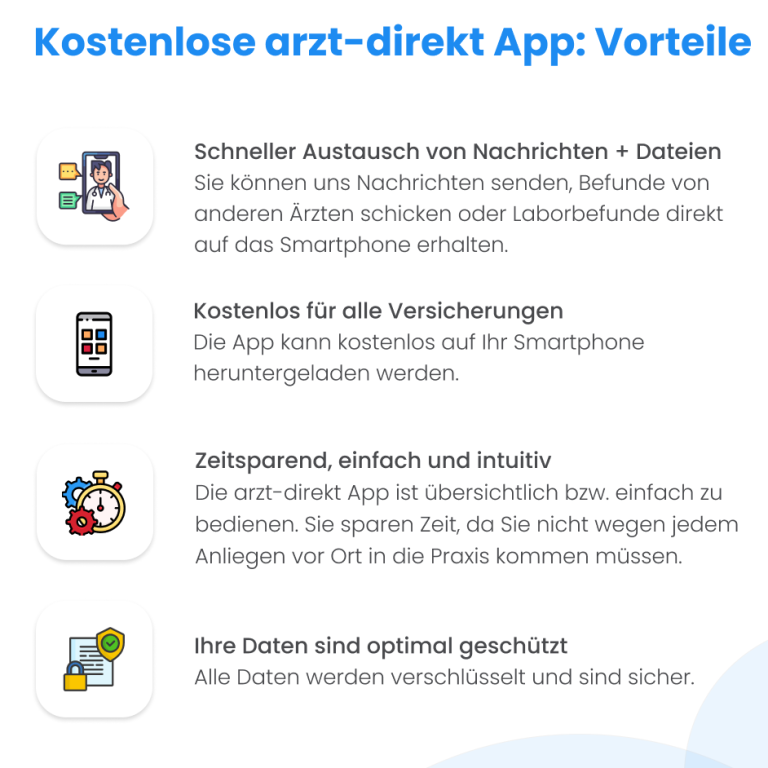 Wir nutzen ab sofort die Arzt-direkt-App zur sicheren Kommunikation mit unseren Patienten. Weitere Infos auch gerne bei uns in der Praxis.